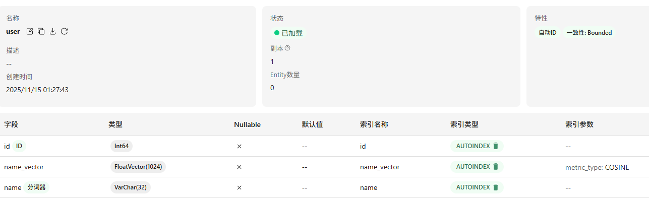 print(f"匹配结果 name={hit.entity.get('name')}, score={hit.distance:.4f}")